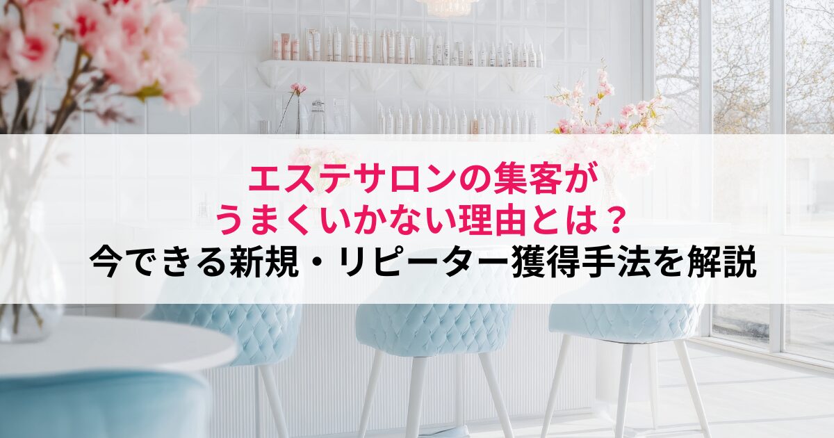 本記事では、エステサロンの集客が難しくなっている背景を整理したうえで、集客がうまくいかない原因と対策、そして今すぐ取り組める新規・リピーター獲得の具体的な手法を紹介します。自分のサロンに合った集客方法を見つけ、無理なく実践していきましょう。